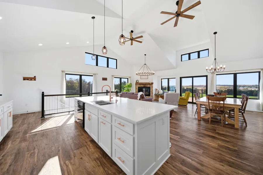Vaulted ceilings, oversized windows, and a walk-out basement highlight the design of this home, capturing abundant natural light throughout the day and framing beautiful Nebraska sunsets in the evening.