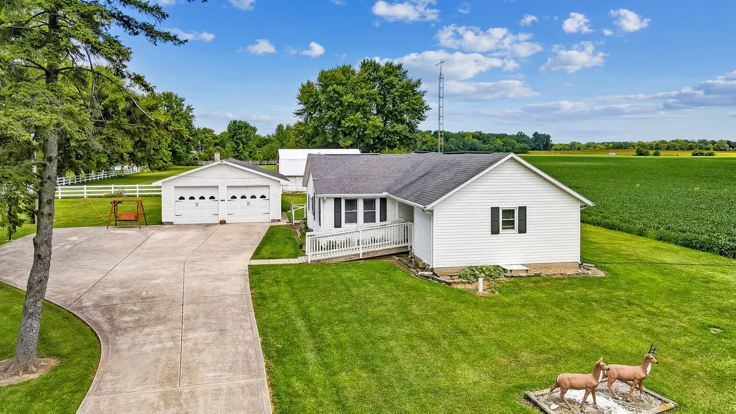 Don't miss this rare opportunity to own affordable acreage in the Miami East School District. This charming ranch home is nestled on a stunning 2-acre lot, offering plenty of space and curb appeal! While the home is in need of updating, it presents a fantastic opportunity to build equity and make it your own. Ideal for those who appreciate country living, this property features an oversized detached garage, a pole barn with 2 stalls and tack room, and an additional storage barn for all your equipment and toys. The low-maintenance vinyl fence ensures safe turnout for your animals, adding to the property's appeal for horse enthusiasts. Whether you're looking for a peaceful retreat, or a smart investment opportunity, this property has great potential!