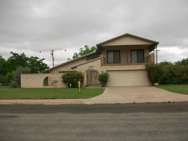 large corner lot large carport with RV storage in rear and two car garage in front fence back and side yard with large pecan and peach trees in back 2 decks one in front and one in rear off master