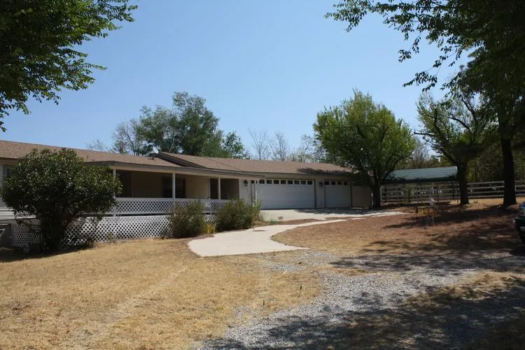Nice 3 bedroom 2 bath home in a beautiful, quiet country setting on 81.7 acres. The 3 1/2 car garage is separated from the home by a very nice breezeway that leads to the beautiful pool and covered patio. The L shaped in ground pool is heated and has lights, diving board and slide. The kitchen has been newly remodeled with beautiful hickory cabinets and granite counter tops including the large portable island. Huge game room was added in 2002, which could be used as a sunroom, den, additional living room or extra bedroom. This room has several windows which overlook the back patio and pool. Very nice 40' x 60' metal barn with water and electricity as well as a built-in tack room. 3 ponds (1 spring fed) and live creek (unless weather is real dry). Good barbed wire fencing and some pipe fencing. 2 sheds - 16' x 10' and 16' x 14'. Carport not included.