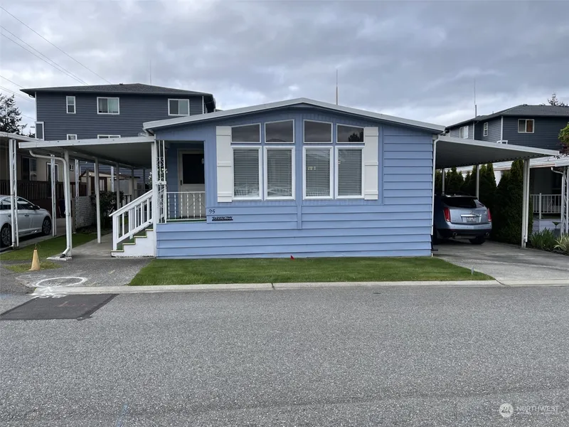 Well-maintained double-wide manufactured home located in the 55 community of Western Village. Home features spacious kitchen with breakfast bar and pantry, large great-room-style living/dining room, 2 bedrooms and two bathrooms. Primary bathroom has double vanity and walk-in shower. New interior paint and blinds. Home has a carport, covered deck and a shed for storage. Park rent $800 per month, and includes water, sewer, and garbage. Pets allowed subject to restrictions. Park approval required.