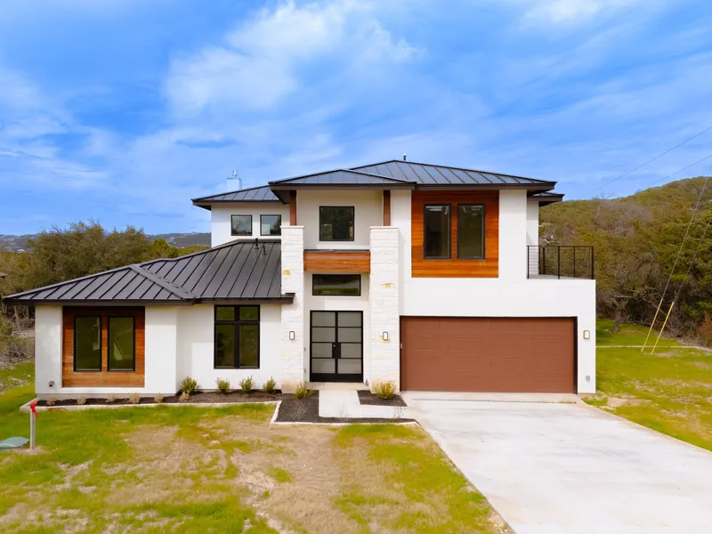Nestled in the scenic Village at Volente, this newly crafted custom home exemplifies modern luxury. Its open floorplan seamlessly blends with the natural surroundings, filling the interior with radiant light. Five bedrooms and three and a half bathrooms are thoughtfully distributed across the layout, complemented by an executive office and a meticulously designed dining space.