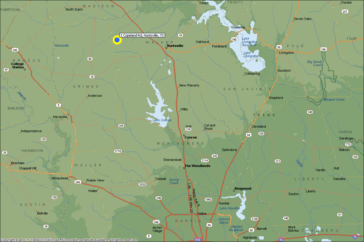 Research Parcel InformationNorth of Huntsville on I-45 take Exit No. 123, (FM 1696), turn left and follow for 1 mile to S.H. 75, turn left, follow for 1/2 mile to FM 1696, turn right and follow for 7.4 miles to Scales Ranch Rd., turn left and follow for 4.2 miles to Copeland Rd., turn right and follow for 7/10 mile to property on right.