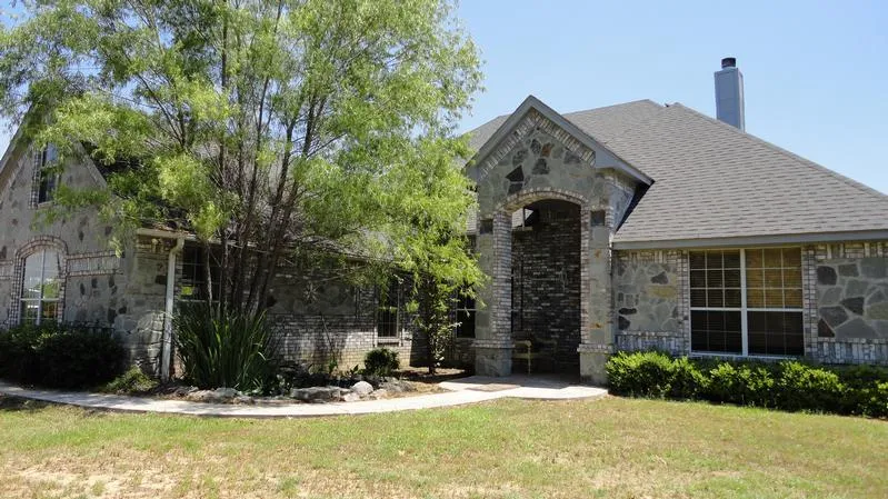 Custom home surrounded by trees on 80 plus acres. Fireplace in LR and master bedroom, beautiful views,open concept. Land has beautiful rock formations and creek. Good soil and grass. Owner counted over 500 pecan trees. Shop on property has living office area. Property could be divided. Will sub-divide see mls#, 11559225,11559230,11559203