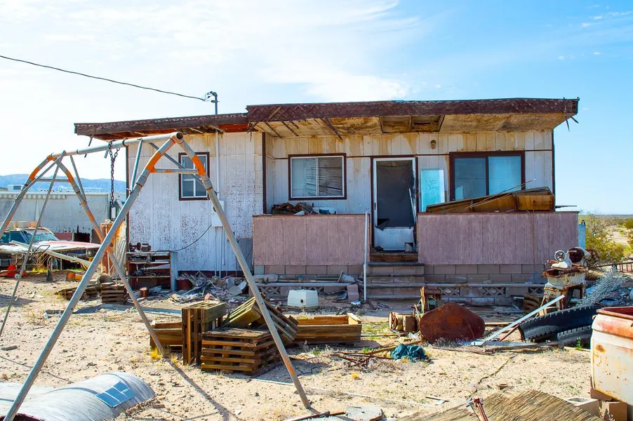 Rustic cabin on 5 acres in the Wonder Valley area! This is an estate sale and agent/seller have not been inside. From outside the home appears to be in disrepair. Agent has no information on interior or utilities and advance interior showings are not available. Buyer to drive by and submit offer contingent on inspection. Storage unit, trailers, vehicles, boat,and all other items to remain and included in sale. Roll up your sleeves and create your own desert get-away compound here!