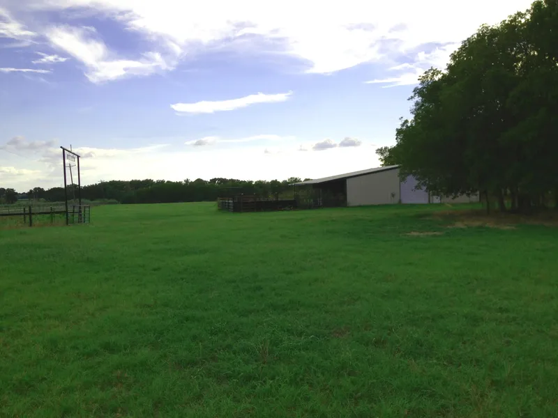 Improvements - There is a Metal Barn built in 2005 with cement floors measuring approximately 56x40x10. 10 garage roll up doors on each end and covered open sheds with gutters on each side currently used for hay storage and pens. The corral is pipe with metal panels a loading alley and squeeze chute. There is a 12 x 20 Metal Building on skids used as storage and overnight stays. Very good livestock 4 x 4 square fencing wire with three strands of barbed wire fence around the perimeter of the property. There is a 3 pipe every 60 (concreted in place) with T-Post every 10. The braces and corners are made of 4 pipe. Ranch Style pipe entrance to property along CR 150. There is four rail white vinyl fencing along 670 of the paved road FM 2063 that section off approximately 6 acres that accesses two of the district water points.