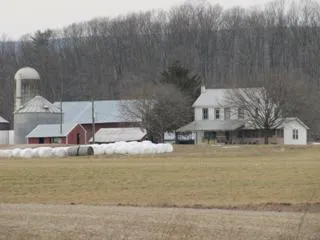 83 acre farm in Snyder County on quiet country road near Mt.Pleasant Mills. 880 head swine finishing barn, small poultry barn, 6000 bushel grain with dryer and steer finishing barn. 3 bedroom house has large kitchen and dining area. - Income producing fram, perfect for the start-up farmer. Numerous outbuildings.