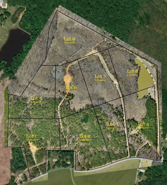 This 9 lot subdivision is ready for a builder to develop. Lots have been perced for 3 bedrooms. Lots 3, 4, 7, and 9 border the pond. 84.2 acres total with about 40 wooded in 12 year old planted pines. Convenient to Farmville this rural location would make a beautiful equestrian or luxury neighborhood.
