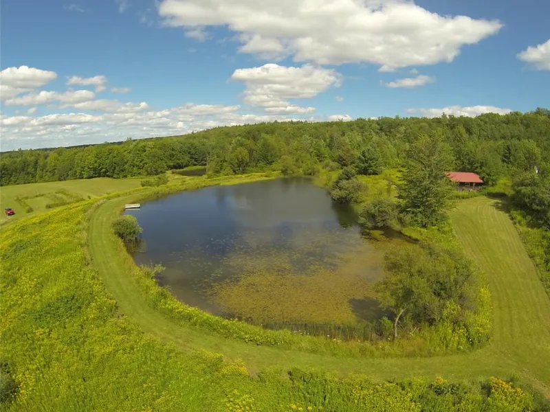 The land consists of hardwoods, softwoods and open fields. The fields are currently being farmed by a neighbor. The whole family will enjoy the 2 stocked, spring-fed ponds -- great for swimming and fishing. Includes a gazebo. There is a stream that runs through the property, and trails for ATVs. A pistol range is set-up and ready for practice. And, there are previous camper hook-ups on the property.
