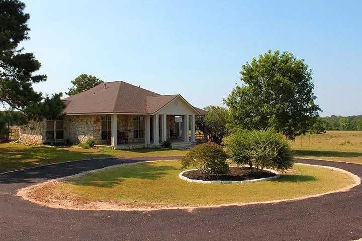 DOUBLE G RANCH 84 Gorgeous rolling acres, scattered trees, 2 tanks, highway frontage with dream you have always wanted! Austin rock and Wood exterior with large porch that has wood ceiling overlooking tank and gorgeous views of pastures. The pastures have been cleared and sowed with grass. The home has 2 bedrooms, 2 1/2 baths and has been completedly updated. New paint through out with beautiful new wood floors in Living Area, Master Bedroom, Guest Bedroom, Game Room along with new oil rubbed bronze faucets,fixtures, and hardware on all doors and cabinets. New sinks in Kitchen, guest bathroom, and powder room. The large kitchen has tumbled marble countertops,back splash and a butcher block island. New Chandeliers in dining area and game room. All new furniture and accessories stays with the home. Covered walk way to double car garage/workshop. There is a large party room with full kitchen, full bath and new table with 10 chairs, bar, and hutch. Party room has porch with double swing and chairs to enjoy the views. New wood fence surrounds party room and back of home. One small shed for storage or possible horse stalls. Topography is rolling partially wooded fields, tanks and river bed. Landscaped in the Spring with many acres of Blue Bonnets framing the Driveway to this "True Texas" Home sit back hundreds yards south of FM 149 E. You are only minutes from Anderson, Grimes County and it is in the Anderson/Shiro ISD. This is a must see--one of a kind. You will not be disappointed. More pictures are available upon request. Call for List of Features that this home boasts. Seller will consider selling home and 42 acres for $600,000.