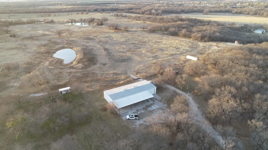 85+/- Acres right at the Bridgeport Texas County Club. Move in ready barndominium 40x80 with full living quarters, kitchen, bed rooms and two baths. Property is high up on a hill just above the golf course. Beautiful views, gorgeous sunrises and sunsets, plenty of hardwoods, two ponds, and the property is game fenced (eight foot fence) if by chance a person wanted to add exotics which also include breeding pens.