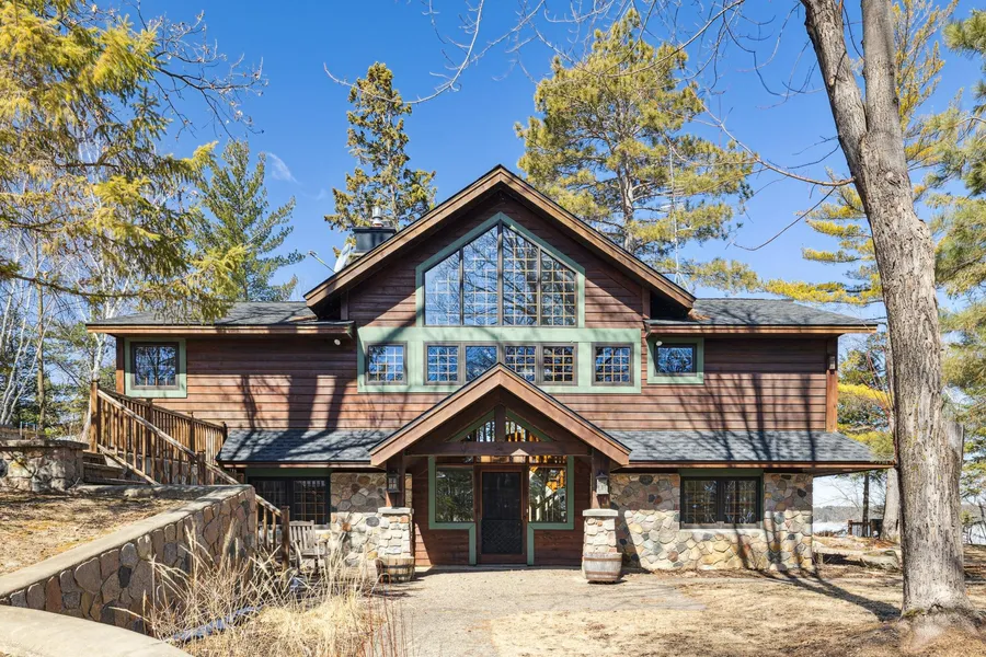 Nestled along the serene shores of Big Whitefish lake, this exquisite property epitomizes Northwoods luxury. A meticulously crafted retreat, the residence blends rustic charm with modern elegance, offering panoramic sunsets with 1.5 acres and 200 feet of sandy beach. Features include four bedrooms, three baths, stunning real stone fireplace, main floor primary suite, large gourmet kitchen, vaulted wood ceilings with exposed trusses, expansive windows framing the natural beauty, hardwood floors, open-concept making this the perfect home for entertaining, spacious stone deck with fire pit, perfect sand beach and that priceless boat house at the waters edge.