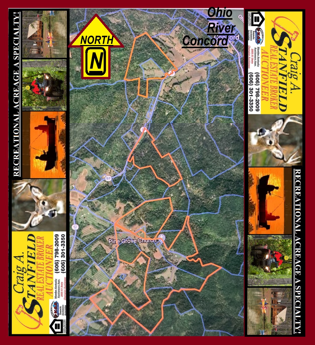 NOTE: Boundaries based upon the records of the Lewis County Property Valuation Administration (PVA), tax assessor office. Property consists of acreages/farms that are non-contiguous in nature (non-adjoining tracts), a mix of beautiful pasture, crop, and woodland acreage, well suited to hunting (whitetail deer, wild turkey, small game) and recreational uses, located on both sides of KY 57 and on both sides of the Pine Grove Church Road, all in the Concord/Covedale area, north of Tollesboro, Lewis County, Kentucky. Note: Property located within the Vanceburg mailing area, but far outside the City Limits of Vanceburg. Acreage well suited to division into multiple tracts (minimum of 5 acres in area; this tract would provide for numerous 5 acre, 10 acre, and 50 acre tracts. 50 acre tracts are the most desirable acreage parcels in the current marketplace) due to frontage on numerous roadways and potential to place roadways into place for access/division. Would provide excellent hunting tracts with rural mini-homes/cabins.