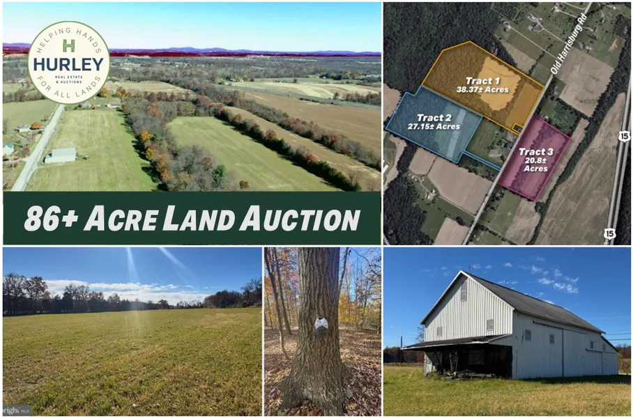 86+ACRE LAND AUCTION at Old Harrisburg Rd, York Springs PA 17372 on Dec 12, 2025 @ 3pm. EXCELLENT property with tillable & wooded acreage, mature timber & abundant wildlife near State Game Lands #249 & Gettysburg PA! Offered in 3 tracts, combination(s) of tracts & as a whole. TRACT 1: 38.37± Acres w/ 15± acres tillable, remainder wooded. TRACT 2: 27.15± Acres w/ 11± acres tillable, remainder wooded. TRACT 3: 20.8± Acres w/ 14± acres tillable & barn, remainder wooded.