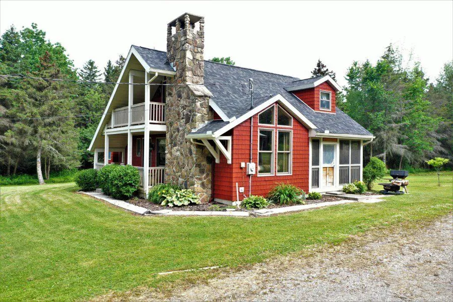 Step into the home through the large, screened-in back porch which is a great finished space for entertaining. Walk into the kitchen/dining combination featuring an island, oak cabinets, double oven, and cooktop. Highlighted by the over-sized stone fireplace and tall tongue and groove ceilings, the living room is another great space for entertaining. Also on the main floor is a large bedroom and a full bathroom. Upstairs is a second bedroom and a loft area leading outside to a second story porch. Enjoy your morning coffee while overlooking the pond from the patio on the front of the home.