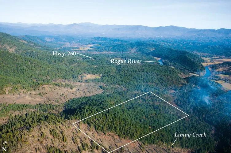 Township 36 South, Range 7 West, Lot 3 and the Northwest Quarter of the Southeast Quarter of Section 16. From Grants Pass, take US199 (Redwood Highway) west. About .5 miles east of Wilderville, take a right onto Riverbanks Road. At 4.5 miles, turn left onto Limpy Creek Road (NFD 2800). At about 1.2 miles, parcel will be to north (right), approximately 150 yards uphill. A woods road that provides access to the parcel near the northeast corner is gated and located at Limpy Creek Road. There is no bridge or culvert over the creek. It is forded in the summer and normally inaccessible in winter.