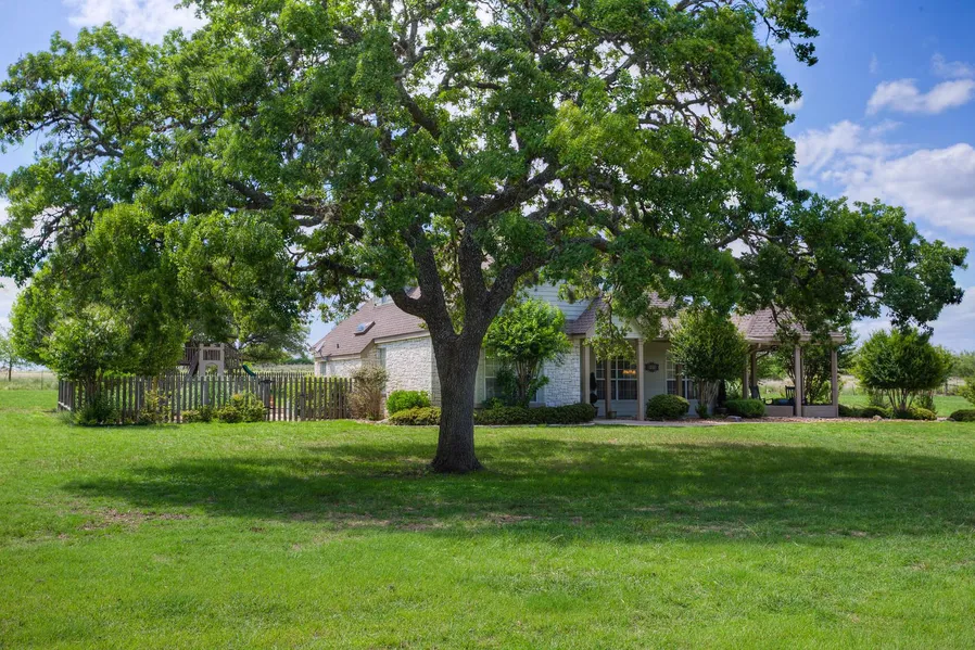 Delightful Hill Country Home in the Homestead at Turtle Creek! This 4/2/1 has an open and bright floorplan! Living area features a beautiful ceiling length stone fireplace, updated flooring, built-ins, large windows,well appointed kitchen with oak cabinetry & granite counter tops, laundry room & bonus storage cabinets. Down stairs is the large master suite with jetted tub, walk-in closet, double sink vanity,& skylight,w/4th bedroom/office down. Upstairs features two good size bedrooms,full bath with double sink vanity,& spacious BONUS room!Lovely covered front porch with gazebo right off the kitchen, Entertaining made easy with outdoor kitchen area,TV w/covered patio seating that conveys,large backyard w/tree house,partially xeriscaped area w/water feature,& fire pit. Park like setting!