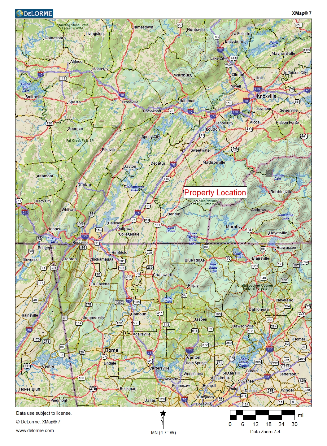 865 partially developed acres adjoining the Cherokee National Forest with spectacular views of the Tennessee Valley and surrounding mountains. This property is located less than a mile from Hiwassee River, one of the premier trout fisheries in Tennessee, and within an hour drive of Knoxville and Chattanooga. Utilities on site with paved road access and excellent interior roads.