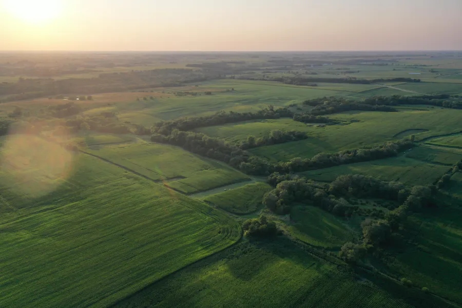 The property is part of a nearly 1,900-acre section with no interior roads, providing a perfect blend of crop ground, timber, native grasses, and meandering creeks. Located in the heart of this expansive section and set back from the road, the farm offers whitetails a safe and secluded environment. Despite its size, the 87-acre m/l farm boasts 3 miles of timber edge running east-west and north-south, allowing for versatile hunting setups and natural funnels. The diverse mix of mature timber, brush, and cedar thickets creates optimal wildlife habitats, with ideal locations for food plots. The deer sign and traffic on this farm are truly remarkable.