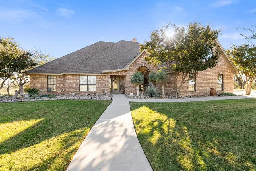 Exquisite quality & craftsmanship are showcased throughout this stunning 4 bedroom, 3.5 baths home, offering 3 spacious living areas, & a pristine pool with a waterfall, all situated on 1.5 acres just minutes from the Brownwood Country Club. The residence features 2 primary suites positioned at opposite ends of the home. Designed for both luxury & functionality, the amenities are extensive & include a gourmet kitchen with a built-in refrigerator, a 5-burner cooktop, a coffee bar, granite countertops & custom cabinets. The adjoining den has a gun cabinet and a built-in desk with cabinets. The upstairs game room has ample room for a pool table, plus a bar with a sink & a TV. The main primary suite is a true retreat, complete with a cozy sitting area & a luxurious 18x18 bathroom featuring a 6x8 shower dual shower heads & 6 body spray & massage jets. The second primary suite is spacious with a sitting area, tub & large shower. Perfect for entertaining, the outdoor space includes a sparkling pool area with a convenient half bath, a gazebo, & expansive 9 x 30 back patio. This home is rare, balancing elegance with comfort in every detail. An adjoining 1.5 acres can be purchased for $50,000.