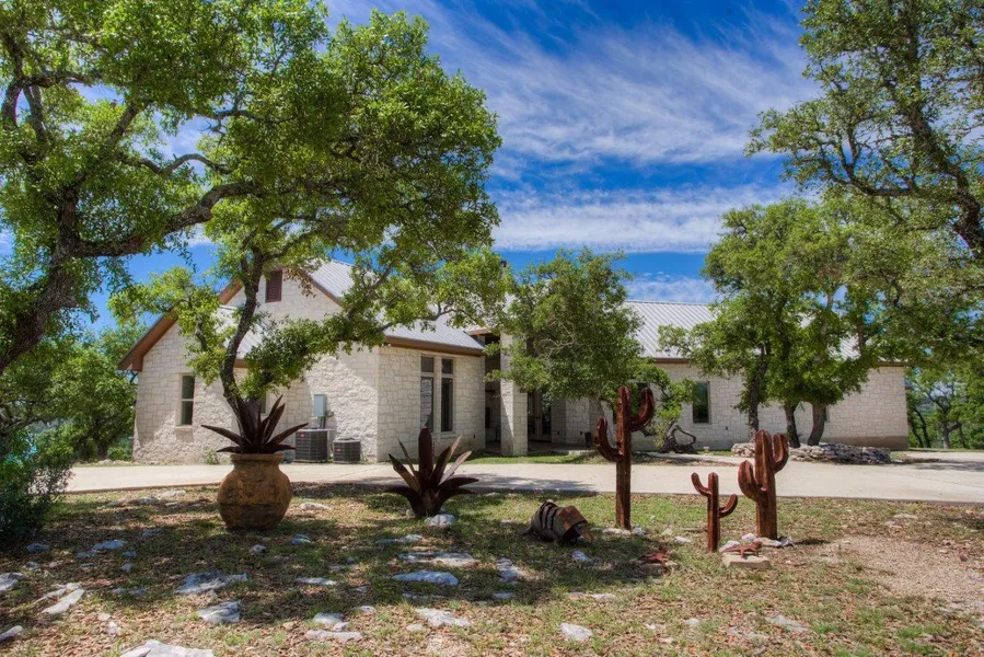 Impeccable and stately, this nearly new Hill Country stunner offers privacy, high end quality finishes and views as far as the eye can see. Built in 2011, this single story ranch sits atop nearly 12 acres just minutes from Kerrville on a quite, private cul-de-sac. Built for entertaining, the open concept living-dining-kitchen is the heart of this home and boast oversized picture windows to take in the view from anywhere. Home features a unique attached guest wing, detached guest house/workshop, huge greenhouse, detached 3 car garage, plus RV pad with hook-ups. The fully outfitted outdoor kitchen has a custom brick pizza oven, fireplace & lounging deck. Betulaurie granite, Travertine tile work, Alderwood cabinetry and hand scraped hardwood flooring throughout make this home a must see! Home furnishings and appliances are negotiable with acceptable offer. Gym equipment does not convey.