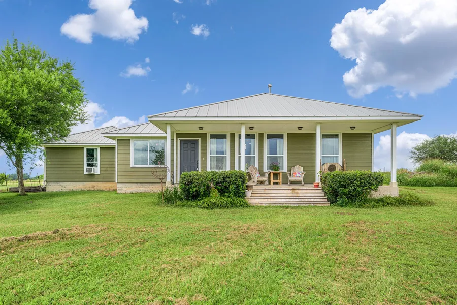 Nestled between Chappell Hill, Brenham, and Bellville, this beautiful 10-acre retreat offers peaceful country living with rolling terrain, mature trees, a seasonal creek, and abundant wildlife. Perched on a scenic hilltop, the one-story home was built by Tilson Homes in 2008 and features a durable standing seam metal roof and wide front and back porches for soaking in the Austin County views.