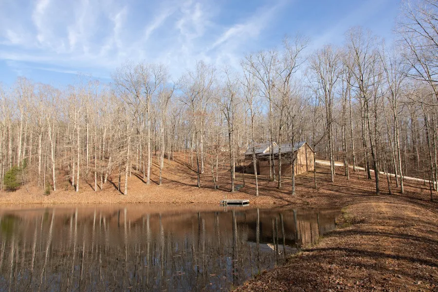 This property offers a quiet living opportunity amongst beautiful scenery and terrain diversity. Upon entry of the farm you cross a creek flowing under the drive, passing through gates into level ground with a wooden barn situated within a fenced pasture that extends around one side of the property. Come through the timber and find a quaint cabin overlooking a spring fed pond and the main residence a top the hill immersed by wilderness.