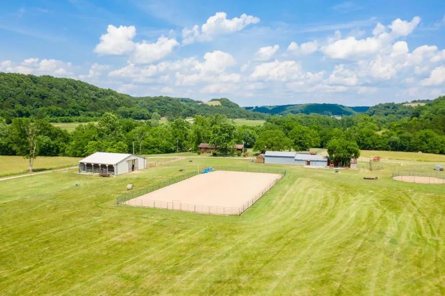 Social Distancing at it's best!! It doesn't get more of a complete picture than this....Secluded and private 88 acres fenced and crossfenced, pastures for grazing and hay (40 acre hay pastures average around 100 round bales per cut), 2 spring fed ponds, frost free water hydrants and auto waterer, 50x60 Barn/stable w/water & electric, 2 wells connected and switchable, tack room, farrier stanscion, 50' round working pen, 90'x180' arena, multiple outbuildings s/water and electric, RV Electric hookups (30 & 50 amp), established garden spot, multiple areas of creek frontage, (live water is hard to find), 10 acres of wooded property leading to a cleared private mountaintop that has proved to be stellar hunting grounds for deer, turkey, and all wildlife known in SW Missouri. The well maintained log sided 3 bedroom house is set up to entertain with a large kitchen and dining area perfect for large gatherings, enormous living room, and a 40x26 ''Bunk House'' (large enough for 5-6 queen sized beds) complete with kitchen area, his and hers showers, laundry, and separate access from the back deck. The flexible space Bunk House could easily be configured to make two bedrooms and another den/living room. Whether you are looking for that private home in the country, that self sustaining lifestyle, fully appointed horse property, working farm, corporate retreat, or just good old down home country living......this is the spot. Just 20 minutes from Pea Ridge AR and 30 minutes from Bentonville AR and all services that Northwest Arkansas has to offer..