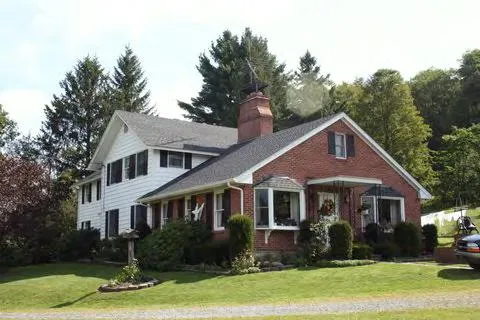 Beautiful remodeled 5 BR farmhouse with a newer addition on 88 acres, fronts both sides of Rte 872. Enjoy the large stone fireplace in the Great Room, beautifully landscaped grounds with 6 picture perfect out buildings in excellent condition, 1st floor BR and bath w/laundry. Borders State Forest and there is some fencing. Excellent horse property or commercial possibilities; some timber value. OGM leased but may be negotiated.