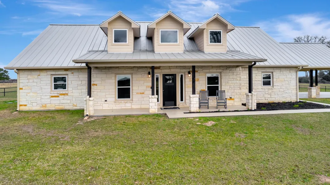 Welcome to this stunning 10 acre country estate just outside of Yorktown, TX! Built in 2020, this custom-designed home offers modern comfort and rustic charm. Boasting 3 bedrooms and 2.5 bathrooms, with an office that could easily serve as a 4th bedroom, this property provides ample space for your family's needs. Step inside to discover an inviting open-concept layout, perfect for entertaining guests or relaxing with loved ones. The heart of the home features a spacious gourmet kitchen with custom cabinetry, granite tops, breakfast bar, and walk in pantry. The oversized living area features a beamed ceiling and 3 large picture windows that provide for great natural lighting. The split floorplan ensures privacy, with the primary bedroom featuring a great en suite bath with large walk-in shower, soaking tub, and double vanities. Dont miss the Texas sized walk-in closet. Secondary bedrooms are connected with a jack and jill bath and both have walk in closets providing ample storage space. Outside, you'll find plenty of room to roam. Relax and unwind on the large front and back porches, where you can soak in the serene views of the surrounding countryside. The piped entrance and yard fencing provide a nice touch. This property offers the perfect blend of comfort, functionality, and outdoor space, making it an ideal place to call home. Don't miss your chance to make this picturesque retreat yours!