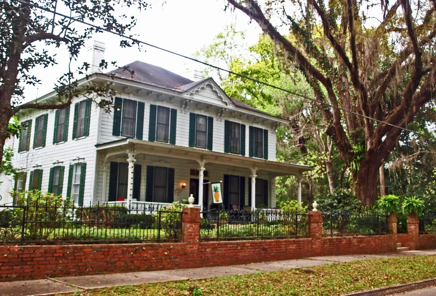 HISTORIC NORTH FLORIDA HOME IN CHARMING MONTICELLO. 1882 Classic Revival home with pool. The well-maintained home retains a traditional period floor plan with 4 large rooms and a wide central hallway on each of its two floors. It has seven fire places, five bedrooms, and three full baths. The interior finishes are superb. The kitchen and baths have tasteful modern upgrades. The kitchen features a large Corian counter-top and a gourmet gas/electric range that would make a professional chef proud. The spacious lot is masterfully landscaped. The pool includes a poolside bar and bath. The old plantation home sits on top of a hill on a quiet, peaceful street.