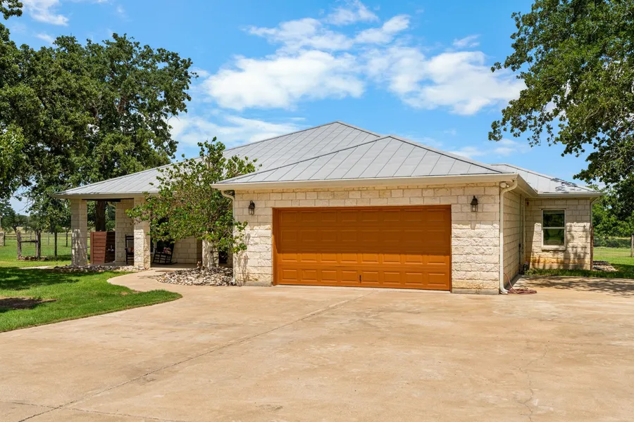 Reduced $50.000.00 A picturesque 2,334 sq. ft. property in the gated River Bend communityan exceptional blend of Hill Country charm and modern comfort. Surrounded by mature post oak, pecan, and native Texas trees, this meticulously maintained all-stone home offers peaceful country living just minutes from Fredericksburg and the Texas Wine Trail. The thoughtfully designed interior features an open-concept layout ideal for entertaining, with two spacious master suites, two additional bedrooms, and two full baths. Step out onto the covered, east-facing patio to take in tranquil views of your livestock or local wildlife. Perfectly suited for horse lovers, the property includes an earthen pond, two versatile metal buildings (ideal for a workshop, tack room, or feed storage), and a fenced paddock. An attached two-car garage adds everyday convenience to this beautifully kept estate.