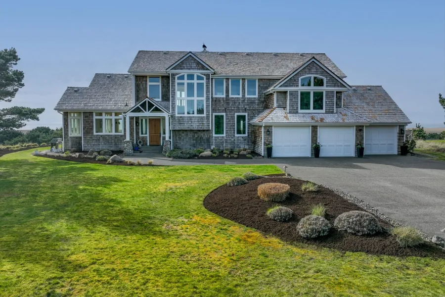Nestled within the exclusive confines of Pinehurst, a gated enclave in Gearhart, lies this exquisite estate, occupying a pristine acre of coastal splendor. Commanding 180-degree vistas of the majestic Pacific Ocean, Tillamook Head, and the Oregon Coastal Range, every corner of this remarkable residence offers a tantalizing panorama. From nearly every room, the scenery unfolds in breathtaking fashion, inviting the outdoors in. The kitchen stands as a testament to culinary luxury, boasting a gourmet array of new amenities including a Wolf 5-burner gas cooktop, Wolf built-in double oven, Miele dishwasher, Sub-Zero refrigerator, and a wine fridge, all accentuated by newly installed granite countertops. Indoors, inviting spaces seamlessly blend with outdoor areas, perfect for soaking in extraordinary sunsets and sunrises. Primary ensuites grace each level, both of which boast the ultimate amb...