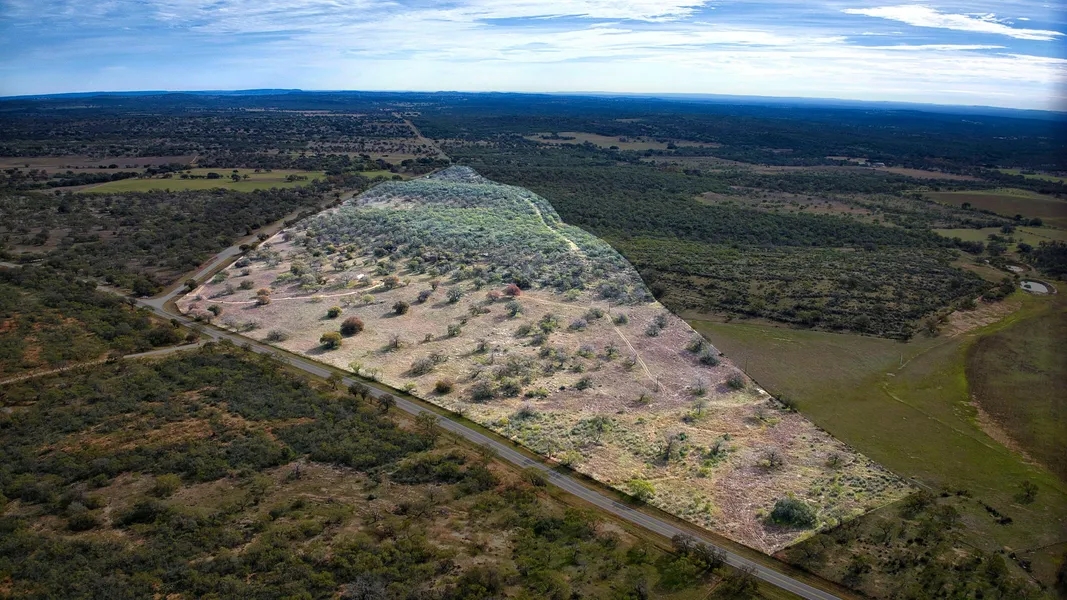 8 miles north of Mason with paved access via RR 386 and RR 2618. Elevation change from 1633 feet to 1740 feet hill top offering nearly 360 degree views. Pretty post oak and live oak timber to native brush habitat. Sandy soils to sandstone on hill top soils. Equipped 80 gpm water well. Windmill but not used. Fenced. Ag valuation. Great property for a residence, hunting and/or possible vineyard along RR 386.