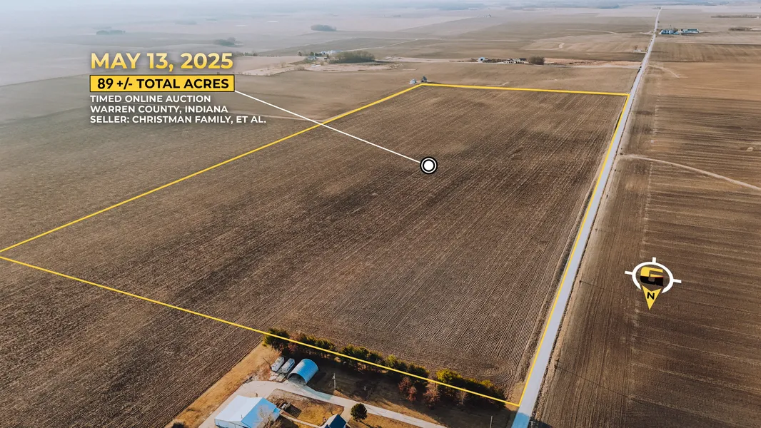 A great agricultural opportunity awaits in Warren County, Indiana, with 89.257+/- total taxable acres offered at auction on May 13, 2025. This highly productive 87.94 FSA cropland acre property boasts a Surety WAPI of 155, reflecting its productive soil quality. Located on CR 725 E, just off SR 26, the farm provides convenient access to key transportation routes. The land is leased for the 2025 crop year, with a cash rent of $310 per tillable acre, which will be pro-rated at closing. This farm will be offered as one (1) tract, making it a rare opportunity in this area of Warren County for farmers and investors alike. Additionally, the seller will consider offers prior to the auction, presenting a chance for early acquisition. Dont miss this excellent investment in Indiana farmland!