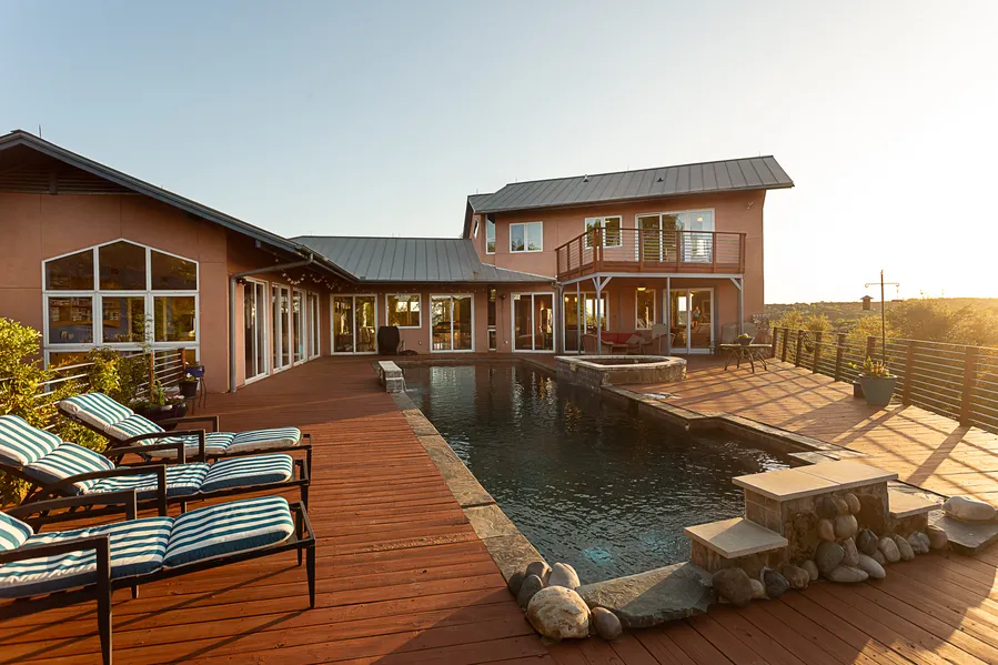 Tucked away on a breathtaking 1.442-acre lot, Casa de Paz is a rare sanctuary where privacy, nature and elegant living converge. Surrounded by wildflowers, mature trees, lush vines and a koi pond, this striking home blends seamlessly into its natural Hill Country setting—offering peace, beauty and room to roam.