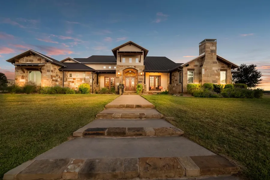 Bring your horses, family and friends and start enjoying this spectacular luxury ranchette in the heart of Central Texas sitting on approximately 34 rolling acres with a gorgeous home, pool, brand new guest house, rodeo arena and much much more within Lorena ISD! The almost 4,000 square foot main residence is grand yet unassuming, allowing it to commune with the landscaping and compliment the spectacular sunsets. Stucco, hill country rock and a metal roof compliment the exterior architecture and instantly makes the interior of the home become a must-see. Walk-up the grand entry and in through the massive iron double doors that leads you to a breathtaking formal dining room and executive office. Both with mirrored double doors and a bonus butler's pantry. From there you can enjoy views of the kitchen, living, and dining with custom detailing throughout each space from vaulted ceilings to...