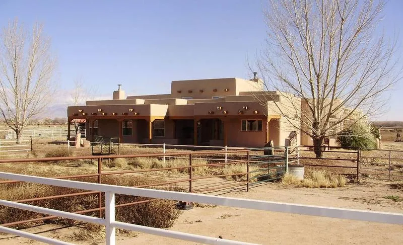 Horse Property Deluxe - If you want horses and can’t give up city comforts, see this rambling 3 or 4 bedroom, 3 bath home. Offers inspired clean lines with colorful Santa Fe touches and spacious rooms. Barn, 3 stalls, runs, 4 horse walker. Pens are fenced and cross fenced easy to work on 9 irrigated acres. In the heart of “Horse Country”.