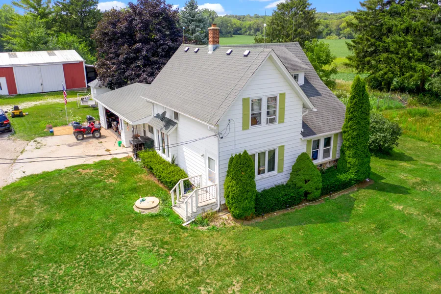 A country getaway in the City of New Berlin! This cozy farmhouse features 4 bedrooms and 2 baths is the perfect home for a simple and comfortable life. Sitting on 9 acres of land, this property is a dream for anyone looking to live off the land. The parcel offers endless possibilities for growing crops, raising animals, or just enjoying the outdoors. In addition to the farmhouse, there are several outbuildings (32x46 barn, 25x44 building and 30x36 metal building) that provide plenty of extra space for storage or hobbies. This is your chance to enjoy the tranquility of country living while still being close to essential amenities. 2.5 car attached garage and main floor laundry! Many newer vinyl windows, updated furnace, modern electric. Also listed as Vacant Land listing MLS #1844835.