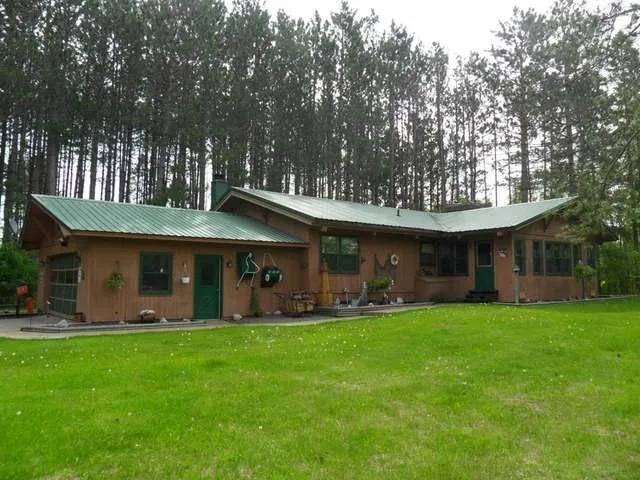 Michigan Waterfront Home for Sale! Very nice 2BR 3BA home is secludedly tucked away amongst tall pines on 9 acres with 1500 feet of frontage on Gilbert Lake. The home offers a large open living space with cathedral ceilings, and much of the lower/basement area finished with a huge family room. Large Brick fireplaces on each level make for inviting nights around the evening fire! Enjoy the steam from the cedar electric sauna that is just off the downstairs bath! The added bonus is the 3 Log Guest cottages! They all have screened in porches and metal roofs. One cottage has 1 BR with full bath and the other two have 2BR with full baths, all include all furnishings and appliances. Excellent for family gatherings or rentals. Owners do rent them out in the summer. To top it all off there is a 40x50 out building for storage that comes with water, electric, and phone. You could store a large RV ...