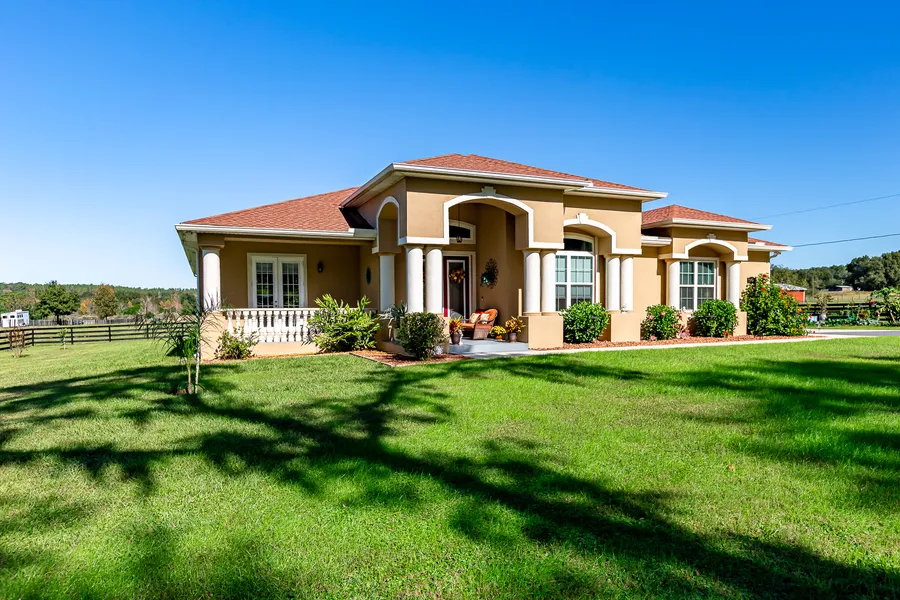 This Home has EVERYTHING you've ever wanted! 4/3 custom "European Style" home with the gorgeous pillars and private outside patio's to enjoy the bird songs first thing in the morning while you're enjoying your first cup of coffee, BUT, if you prefer to sit inside you can still enjoy the view through extra large windows in every room, or sit in the "Sun Room" and watch all the farm animals and their hijinxs! Too many areas to mention to just sit and enjoy your private time! But you say you like to cook? This is a dream kitchen with Italian tile backsplash imported from Spain and high-end appliances plus an added bonus - this home actually has its own wine making room AND a separate building for smoking meat! Fenced and cross-fenced for the farm animals and the barn has extra added features! Caged, salt water, heated in-ground pool and Jacuzzi! The bedrooms are Hugh with walk-in closets an...