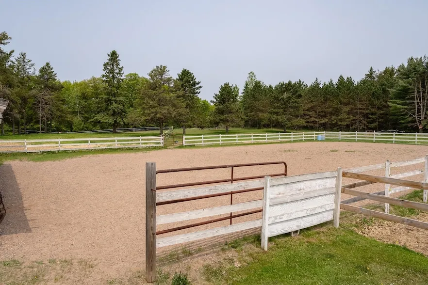 Discover this 3+ bedroom, 3-bathroom home on over 9 acres of picturesque land. Built in 2001, this residence offers over 2800 sq ft of living space, thoughtfully designed for comfort and style with an inviting open-concept layout. Step inside to a warm, spacious interior, perfect for family gatherings and entertaining guests. The property features a beautifully landscaped yard adorned with blooming flowers, apple trees, and a charming brick patio sidewalk. For the equestrian enthusiast, two well-equipped barns await: The upper barn boasts a 10-foot alleyway with custom concrete, 9 box stalls each with fans, lights, and electric plugs, plus a loft that holds 3-4000 square bales. Removable stall walls allow for customization, enabling larger stalls if needed. Both barns are 56ft x 35ft and include tack rooms. The upper barn also has the foundation already started for an add-on lean-to, offering potential for additional covered space. The lower barn features 6 slip stalls and holds approximately 1000 square bales. Outdoor amenities include a 152ft x 86ft arena with lights and a 12ft x 10ft shed with a workbench. Recent updates include a new roof on the house, lower barn, and shed in 2019, as well as new pressure tank, water heaters, and a propane heater with ductwork in 2018. The lower barn facade was redone in 2023. This property is currently in use as a profitable horse boarding facility, generating steady revenue from boarding services, and offers additional opportunities for growth. Additional highlights include a lower-level guest suite with a kitchen with black and white marble flooring. This turnkey horse ranch offers endless possibilities continue the boarding business or explore other ventures, such as storage units. Please note: The septic system is currently rated for 3 bedrooms, and modifications will be required to accommodate a full 5-bedroom capacity.