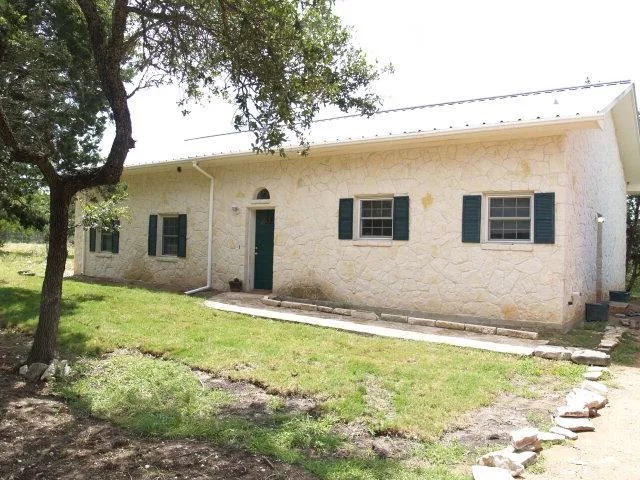 Traditional hill country style home on 9.14 acres with rock exterior, metal roof & steel construction. Open floor plan with high ceilings has large kitchen & dining area. Great views from the living room that opens to patio area. 9 acres for 4-H projects, watching wildlife or just privacy. Master bedroom has walk-in closet & large bath. Two other bedrooms & a bath downstairs.