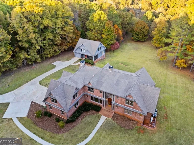 On the market for the very first time, this impressive 9.16 acre estate is an unparalleled opportunity to own Riverfront property in beautiful Northeast Georgia. With significant river frontage along the Apalachee River, two homes grace the grounds of this sprawling estate. The original design of the main house is one of the first from Preston Bennett/ HKS Architects. Striking architectural details of the primary home balance a stunning blend of gables, bullseye windows, porches, terraces, and balconies. Inside you're welcomed by elegance in dramatic fashion by double mahogany doors, two-story foyer, ornate chandelier, accent flooring, coffered ceilings, staircases, and stunning views compliments of floor to ceiling windows. The engaging living space on the main level includes the formal dining room, gourmet kitchen, keeping room, mud room, laundry room, and guest bath. All four bedrooms have en suites with the master being superior in size and features and is located on the main level. On your way to the upper level there's a cozy landing overlooking the beautiful river, a perfect nook for reading or reflection before making your way upstairs to the generous secondary bedroom suites. A most luxurious terrace level is the focal point and central gathering destination enhanced by a fireplace and seamlessly flows onto the exterior patio. Additionally on the terrace level are two flex spaces currently being used a music room and home office. Unfinished square footage in the attic and terrace level is very functional multi-level storage and can easily be finished. A screen porch and princess balcony complete the outdoor living spaces of the main home. The guest house is a retreat for friends and family, adds versatility, convenience, and charm to the property. The stylish main level is functional and efficient with an open floor plan that feels both spacious and cozy. A screened porch fulfills the duties of this home ensuring ultimate enjoyment of the grounds for all guests. The grounds include a variety of landscapes, providing a cohesive outdoor experience that compliments the grandeur of the estate. The grassy lawns are perfect for recreation or events, while the woodlands create a beautiful canopy and add to the privacy of the property. Riverfront living offers a unique lifestyle filled with opportunities including exploration, relaxation, and entertaining. This is your chance to fully immerse yourself in the beauty of nature, your chance to live in a custom designed home, and your chance to purchase your very own estate. This leisurely lifesyle, connection to nature is shared by all in the community. There is a large focus on outdoor living with a minimum 5 acre lot size and a community shared 20+ acreage bordering the river. Neighborhood amenities include common area with covered pavilion, playground, large lawn area, and walking trails with the Apalachee River as the backdrop. Bring the kayaks, fishing poles, tubes, family members, friends, and co-workers to Riverwalk on the Aplachee. The neighborhood streets are walker, jogger, and horse friendly. Enjoy quiet, star filled nights, listen to the sounds of the shoals while being only 20 minutes to thriving Downtown Athens/UGA, 15 minutes to quaint Watkinsville, 15 minutes to beautiful historic Madison, and 30 minutes to Stanton Springs. It is also close proximity to multiple private schools including Athens Academy, Westminster and Prince Avenue. Easy commute to the airport/ Atlanta area as well.