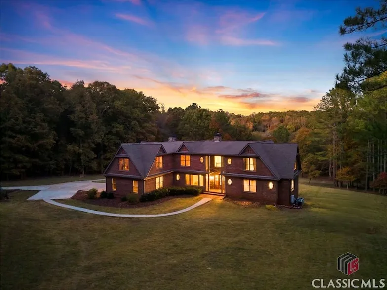 On the market for the very first time, this impressive 9.16 acre estate is an unparalleled opportunity to own Riverfront property in beautiful Northeast Georgia. With significant river frontage along the Apalachee River, two homes grace the grounds of this sprawling estate. The original design of the main house is one of the first from Preston Bennett/ HKS Architects. Striking architectural details of the primary home balance a stunning blend of gables, bullseye windows, porches, terraces, and balconies. Inside you're welcomed by elegance in dramatic fashion by double mahogany doors, two-story foyer, ornate chandelier, accent flooring, coffered ceilings, staircases, and stunning views compliments of floor to ceiling windows. The engaging living space on the main level includes the formal dining room, gourmet kitchen, keeping room, mud room, laundry room, and guest bath. All four bedrooms have en suites with the master being superior in size and features and is located on the main level. On your way to the upper level there's a cozy landing overlooking the beautiful river, a perfect nook for reading or reflection before making your way upstairs to the generous secondary bedroom suites. A most luxurious terrace level is the focal point and central gathering destination enhanced by a fireplace and seamlessly flows onto the exterior patio. Additionally on the terrace level are two flex spaces currently being used a music room and home office. Unfinished square footage in the attic and terrace level is very functional multi-level storage and can easily be finished. A screen porch and princess balcony complete the outdoor living spaces of the main home. The guest house is a retreat for friends and family, adds versatility, convenience, and charm to the property. The stylish main level is functional and efficient with an open floor plan that feels both spacious and cozy. A screened porch fulfills the duties of this home ensuring ultimate enjoyment of the grounds for all guests. The grounds include a variety of landscapes, providing a cohesive outdoor experience that compliments the grandeur of the estate. The grassy lawns are perfect for recreation or events, while the woodlands create a beautiful canopy and add to the privacy of the property. Riverfront living offers a unique lifestyle filled with opportunities including exploration, relaxation, and entertaining. This is your chance to fully immerse yourself in the beauty of nature, your chance to live in a custom designed home, and your chance to purchase your very own estate. This leisurely lifesyle, connection to nature is shared by all in the community. There is a large focus on outdoor living with a minimum 5 acre lot size and a community shared 20+ acreage bordering the river. Neighborhood amenities include common area with covered pavilion, playground, large lawn area, and walking trails with the Apalachee River as the backdrop. Bring the kayaks, fishing poles, tubes, family members, friends, and co-workers to Riverwalk on the Aplachee. The neighborhood streets are walker, jogger, and horse friendly. Enjoy quiet, star filled nights, listen to the sounds of the shoals while being only 20 minutes to Downtown Athens/UGA, 15 minutes to Watkinsville, and 30 minutes to Stanton Springs. It is also close proximity to multiple private schools including Athens Academy and Prince Avenue.