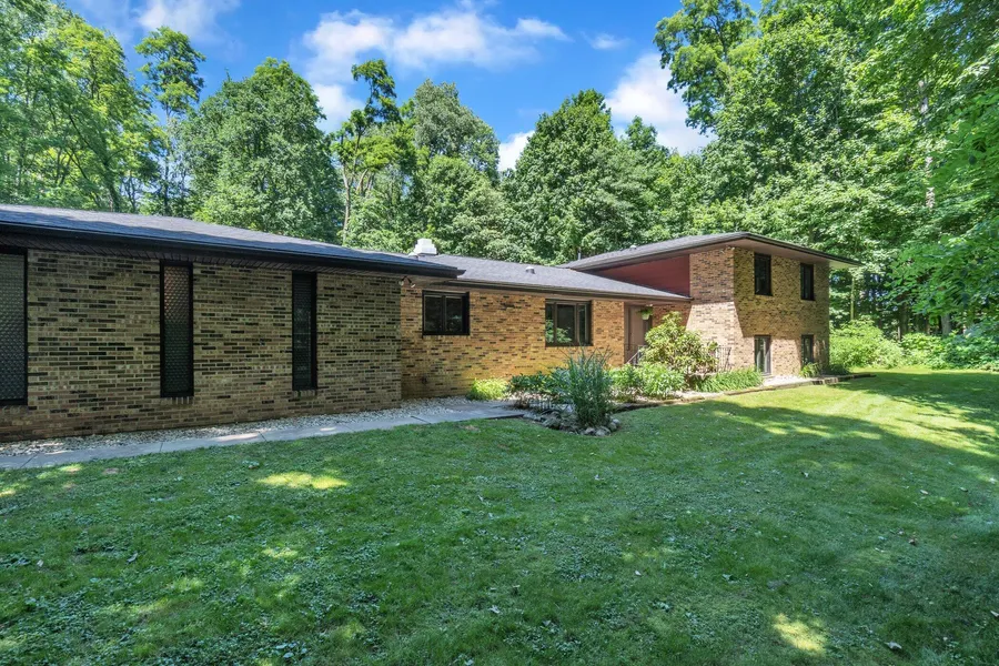 Private retreat secluded by woods that has TONS to offer. 9+ acres, 6 beds, 3 full baths, large updated kitchen with vinyl floors throughout main floor, large insulated windows offer an abundance of natural light overlooking the beautiful back yard, sleek granite fire place with an additional wood burning fire place in the den. Spacious bedrooms upstairs, bamboo flooring in two of the 4 bedrooms upstairs with updated main bath and a primary ensuite bathroom that overlooks the peaceful woods. Basement has tons of room to potentially finish off into even more living space! Additional lot included; 000-12-02-376-006-01. RV port included with crushed asphalt! Chimney was just cleaned as well. Schedule your showing today!