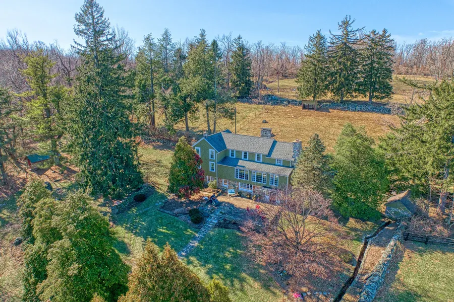 Perched hillside, where views boast fifty miles of Loudoun Valley beauty and incredible scenes of sky, this serene slice of provincial luxury awaits on 9.35 pastoral acres. Arrive from beyond the gaslamp adorned entry, where your guesthouse and main house await. Inside, a patina of time and elegance are balanced by thoughtful modern conveniences. Discover walls lined with stone, colors of historic character, three wood burning fireplaces, and hardwood floors partnering with professional-grade kitchen appliances, heated floors, illuminated built-in shelving, and light-filled encasement windows. In morning, watch fog lift off the valley while tending to springhouse, barn, or paddock chores, then deliver farm-to-table eggs for Sunday breakfast. In the kitchen, be inspired to gather and create meals under the wood beamed ceiling. Here, a cherry Bertazzoni range sparks conversation, while the expansive butler and kitchen pantries assist with finishing touches before serving in the handsome dining room. In the ivory-hued great room, nooks for quiet conversation and holiday moments are warmed by the fireplace, while the stone-lined patio hosts al fresco parties, private wine tastings, and evening laughter overlooking shimmering distant lights. Tend to turn-key flower beds, and spend rainy days within spaces for exercise, business, or a favorite read. In evening, four bedrooms and two and a half baths are refreshing and relaxing. In the primary bedroom, enjoy a dual closet space and a charming, coved ceiling, while in the guest house, one bedroom, one bath, fireplace, and separate electrical hosts long-term guests or renters. From the mudroom and sage-hued foyer, embark on adventures to close by breweries, vineyards, and parks for hiking and rock climbing. Enjoy closeness to Bears Den and Great Country Farms, while the shops and dining of Charles Town, Leesburg, and Winchester await.
