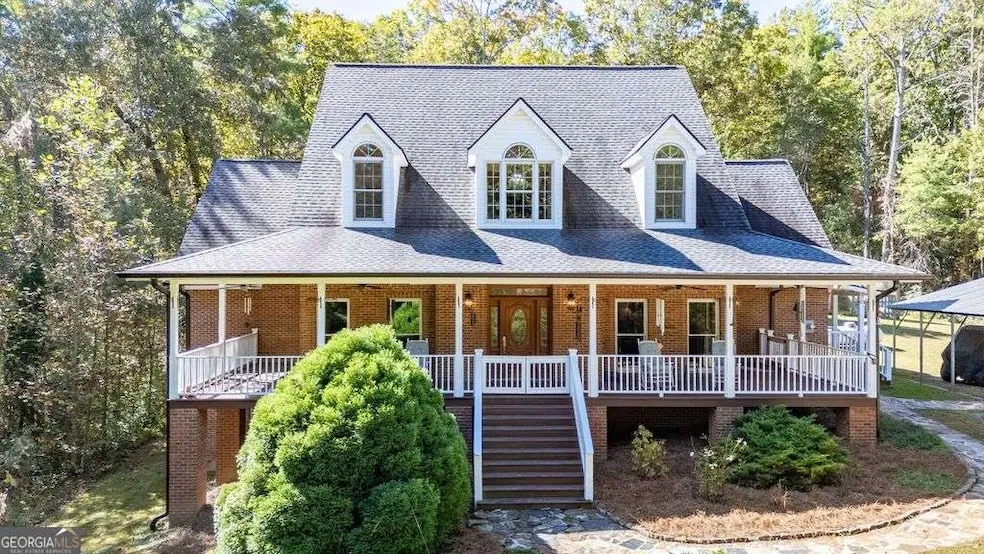Private Mountain Retreat in Ellijay on over 9 acres in prime location. Secluded, Spacious, & Perfect to Getaway. Nestled in the serene hills of Ellijay, this stunning 4-bedroom, 4 and half bath, low maintenance brick mountain home offers the perfect blend of seclusion and comfort, all just minutes from the area's renowned apple farms, pumpkin patches, hiking trails, waterfalls and outdoor activities. Located right off Highway 52, this property is a rare gem. Ideal as a private mountain retreat, second home, or investment property like an Airbnb. Step inside to discover a home that's truly built with perfection and serene mountain living. The open-concept design features hardwood floors throughout, with gorgeous wood beams and rustic accents that evoke the warmth and charm of a classic mountain home. Vaulted ceilings and expansive windows invite natural light and provide breathtaking views of the surrounding wilderness from every room. Whether you're relaxing in the cozy living room with the stone fireplace or enjoying a quiet evening on the massive front or back porch, you'll feel truly connected to nature and relaxation. The spacious master suite, conveniently located on the main level, features a large walk-in closet and a luxurious en-suite bath. An additional bedroom on the main floor offers the perfect space for an office or guest room. Upstairs, two more generously sized bedrooms share easy access to full baths. One of the bedrooms boasts an enormous bonus closet that could even serve as a small reading nook or lounge area. This small bonus space provides even more flexibility for your needs. Perfect for a game room or entertainment area. The open kitchen features an island, perfect for meal prep or gathering with loved ones, plus a cozy breakfast area for morning coffee. A separate dining room adds elegance and offers plenty of space for larger meals or entertaining. For those looking for off-grid living, this home is practically self-sufficient with a optional wood-burning furnace as a backup heat source and a full house generator, making it a true diamond in the rough for those seeking an eco-friendly, self-reliant lifestyle. A full unfinished basement awaits your finishing touch, whether you want to add a game room, storage, or even extra living space. The property also includes a small fenced area, ideal for pets or a garden, plus an outbuilding for extra storage. Whether you're enjoying wildlife from the porch, exploring the nearby hiking trails, or taking advantage of all the local farms and activities, this home offers a peaceful, quiet retreat with the perfect blend of modern amenities and natural beauty. Don't miss out on this rare find in Ellijay! A true mountain escape that's as functional as it is beautiful!