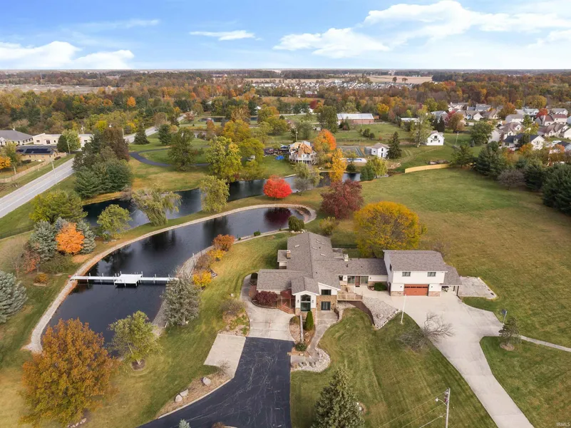 Rare opportunity to own beautiful 9.43 acres with tree and pond views featuring extremely well maintained home with walk-out basement, outbuilding with apartment on main and office/living space on second level. Total of 7 bedrooms with two additional rooms that could easily be considered bedrooms with minor adjustments. (Home 5-6 BR, Apartment 1 BR, Office/Living Space 1-2 BR) Heated garages totaling 9 spaces between the house and outbuilding. Outbuilding has oversized overhead doors for large equipment use. New roof (complete tear off) in 4/2019 on both house and outbuilding. New LVP flooring on main level of home. Zoned HVAC in house with newer high efficiency units. Home has generator. Three wells (1 for front pond) and two septics. City utilities do run along property should buyer want to access in the future. Home has a chef's kitchen with professional grade Thermador and Sub Zero appliances. Lower level in home, apartment and second level of outbuilding also have kitchens. Most bedrooms are bath en suite. Master bath has steam shower and jetted tub. 4 fireplaces throughout home including one in master bedroom. Abundance of natural light with open concept, storage and many upgrades throughout. Main floor and lower level laundry. This is the perfect opportunity to have a home based business that is conveniently located around shopping centers, dining, access to I69, hospitals and walking trails while still having the feel of a private estate property. Outbuilding has separate utilities and was once a billing office with a commercial variance. Perfect for mechanic, landscape company, lawn care company or garden center just to name a few. Property could be converted to commercial property as Kroger is across the street and CVS is adjacent to property. Home is also being marketed as commercial property in addition to residential.