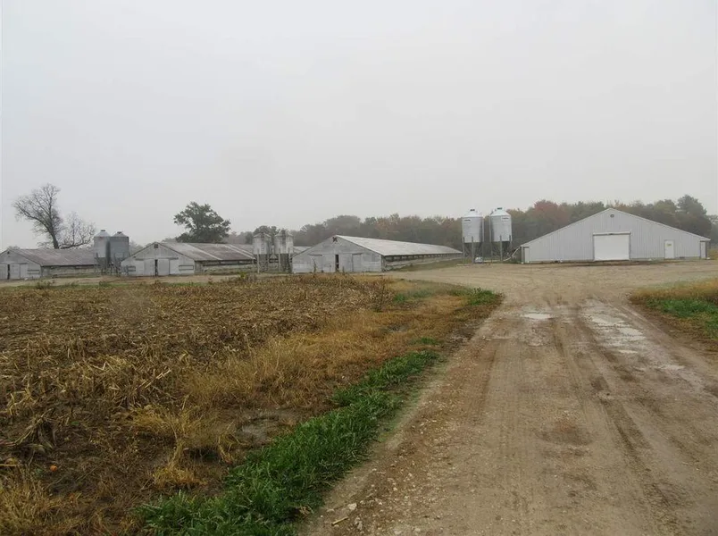 9.43 Acres and four former turkey barn grow-out buildings. There is also a nice 30X20 Barn on this parcel as well that could serve multiple purposes. The newest grow-out barn was built in 2016 and property comes with a backup generator as well. There is a home and 6.53 acres available for purchase for $179,00, and 62 acres of mostly tillable land available for $425,000.
